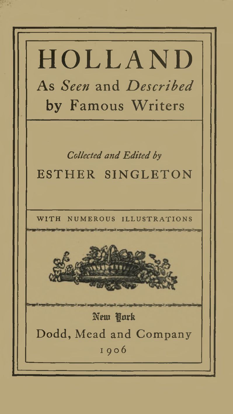 Netherlands Holland Description and Travel; General view of Holland; History Topography Manners and Customs of Holland