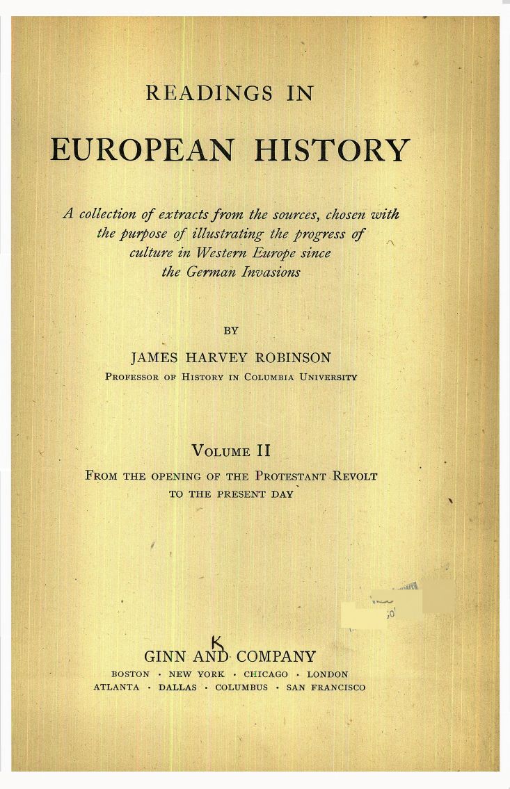 Readings In European History, Volume II, by James Harvey Robinson (1906)