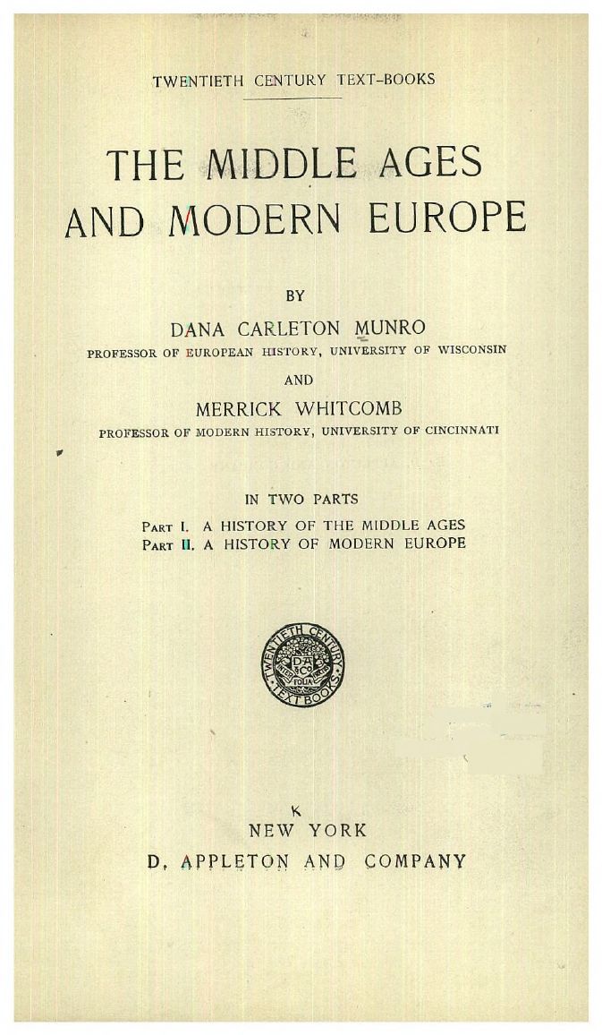 The Middle Ages And Modern Europe by Dana Carleton Munro and Merrick Whitcomb (1908)
