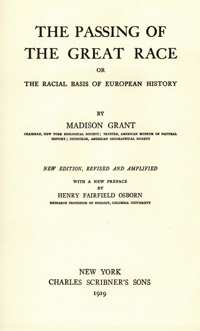 The Passing Of The Great Race or Racial Basis Of European History by Madison Grant (1918)